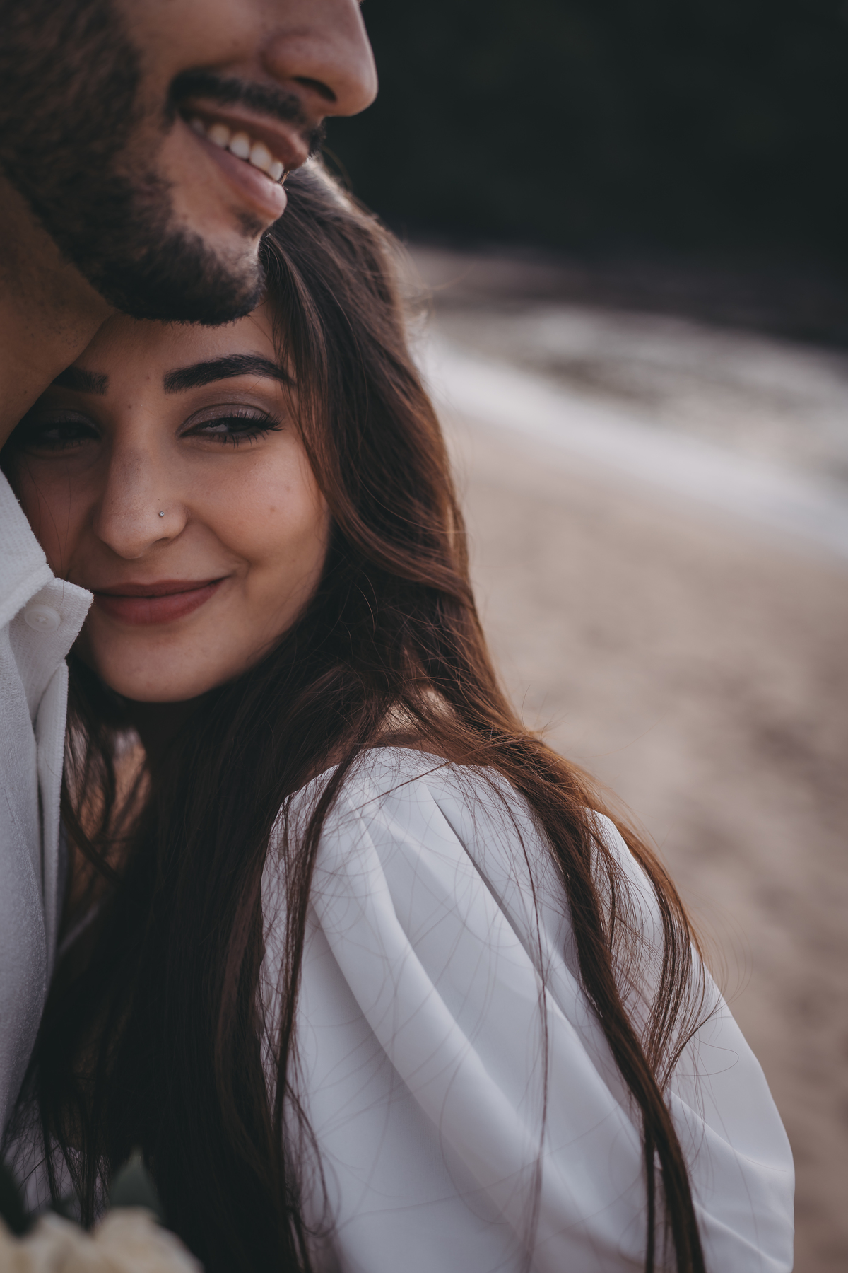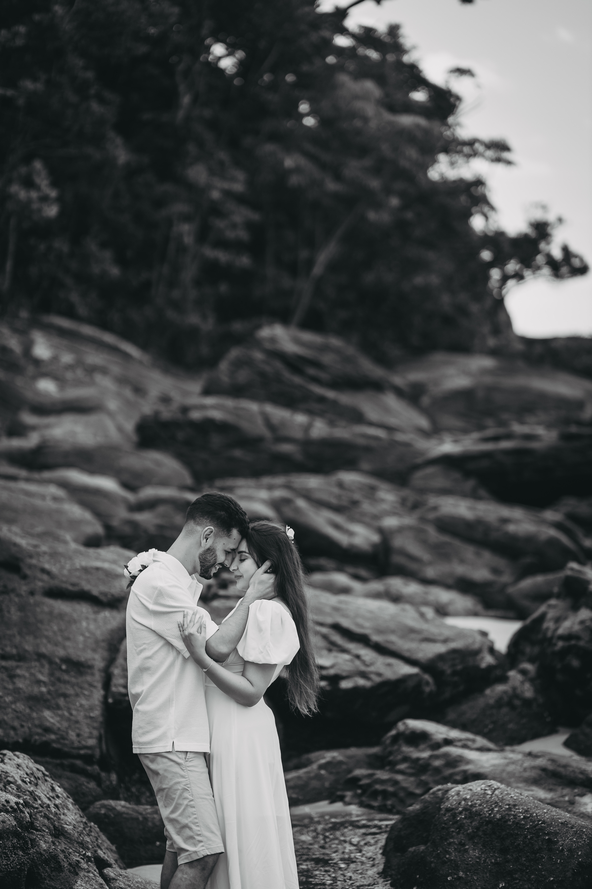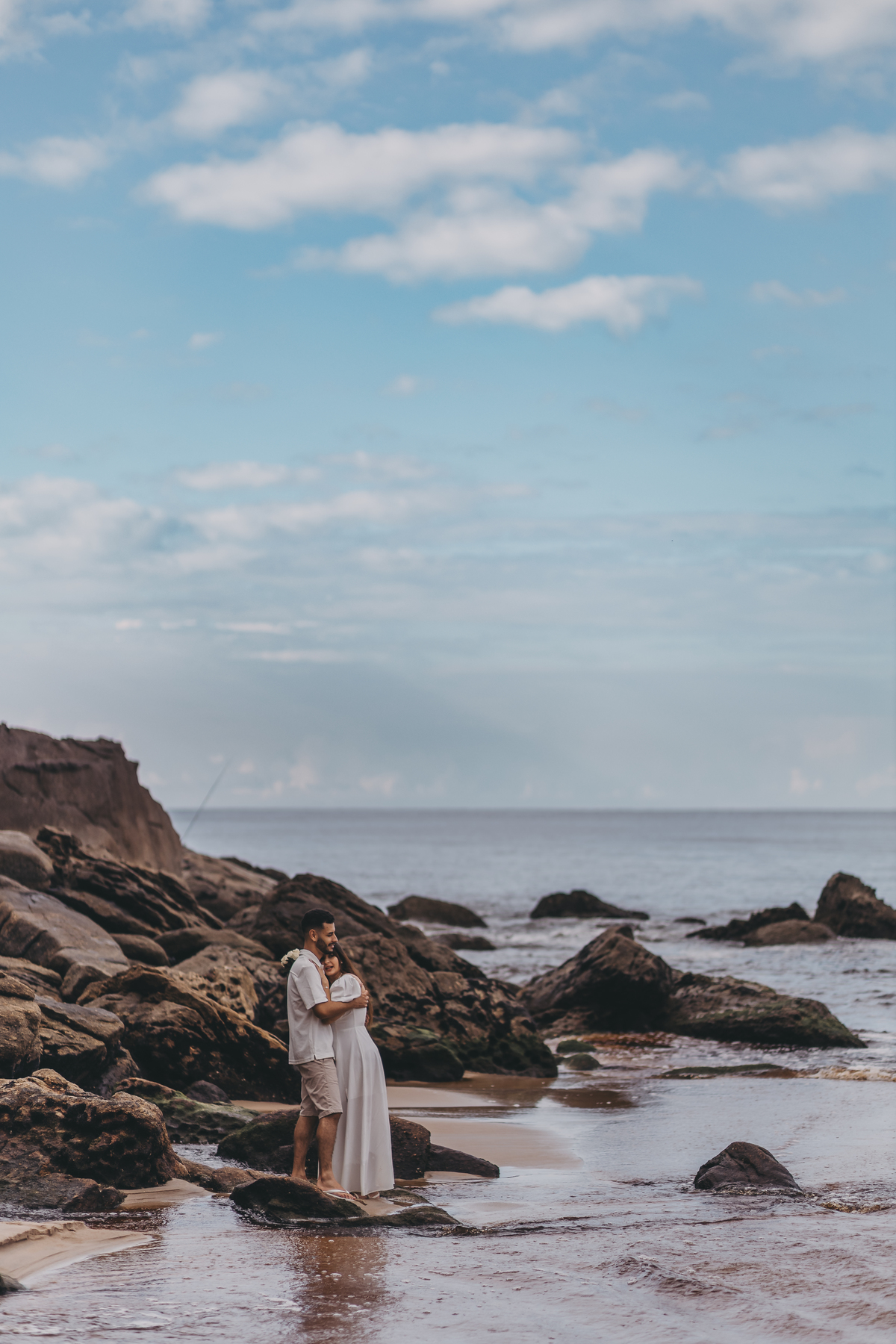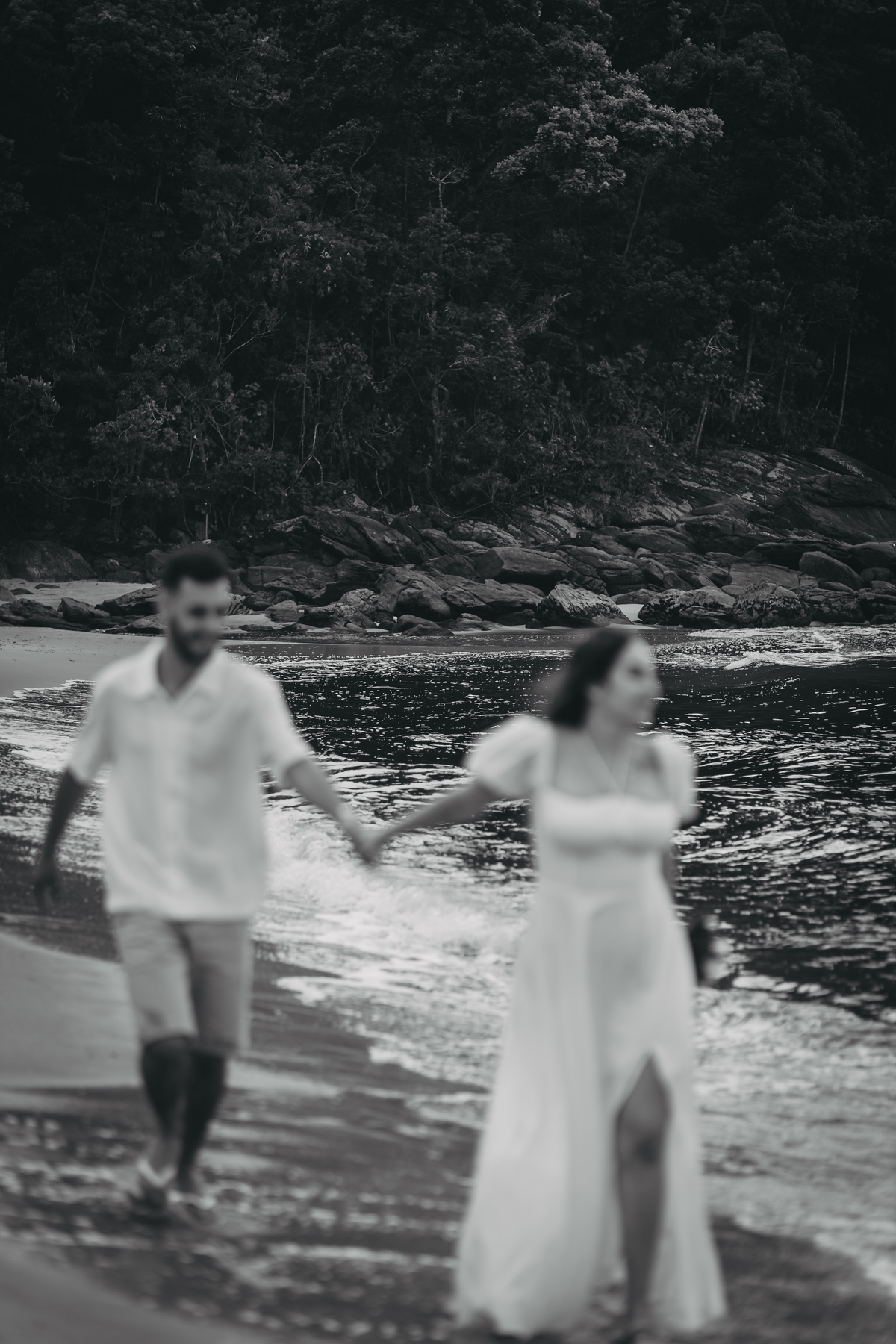 No nascer do sol da Praia da Jureia, em São Sebastião, Nathália e Vinicius chegaram achando que a timidez iria conduzir cada passo do ensaio.