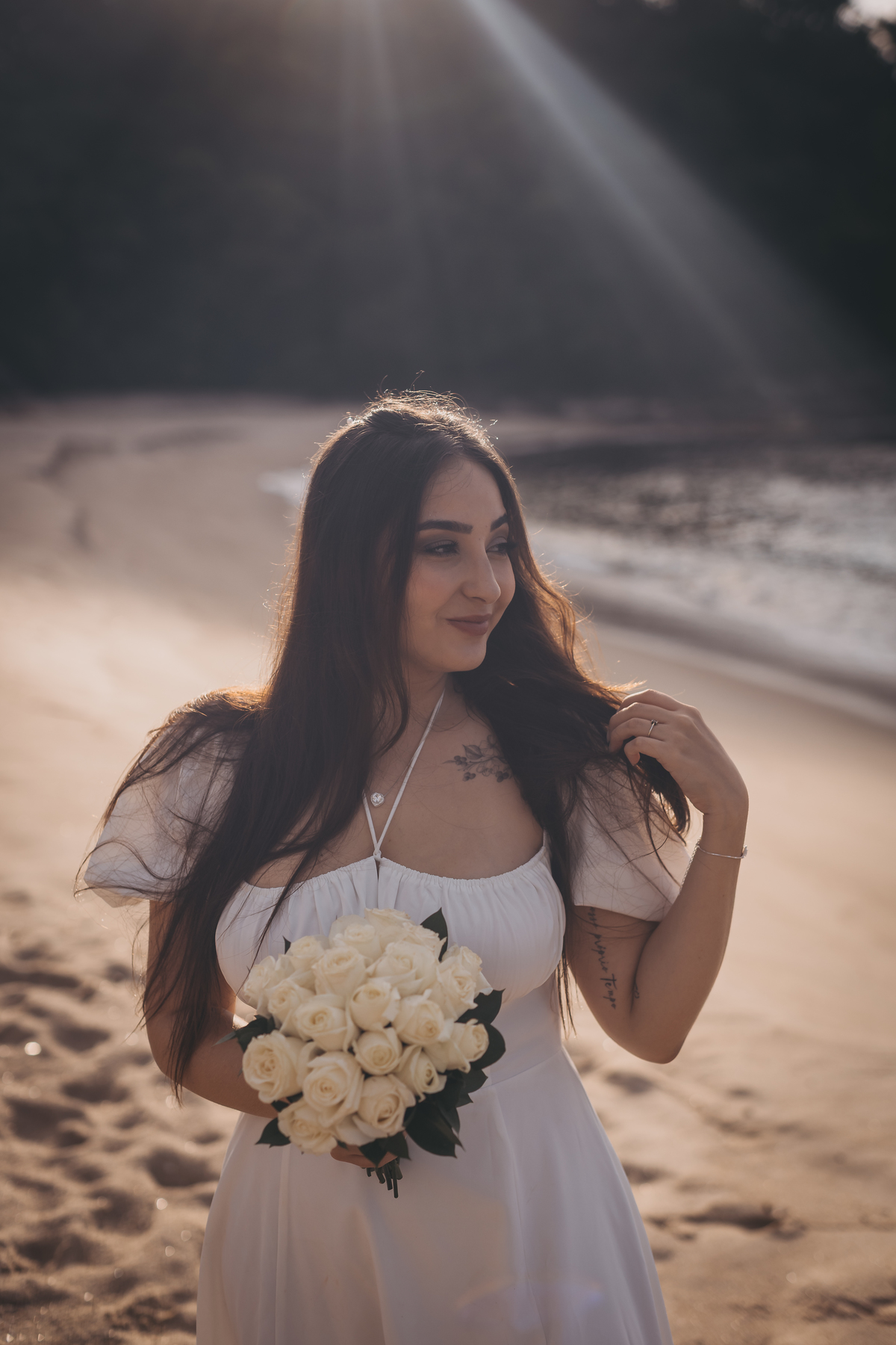 Entre a luz dourada, o som do mar e os olhares trocados, a vergonha foi ficando pequena diante do amor.