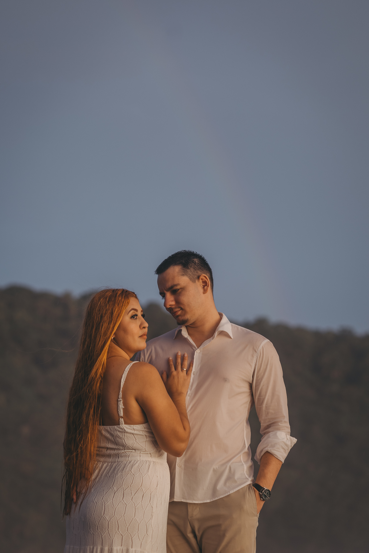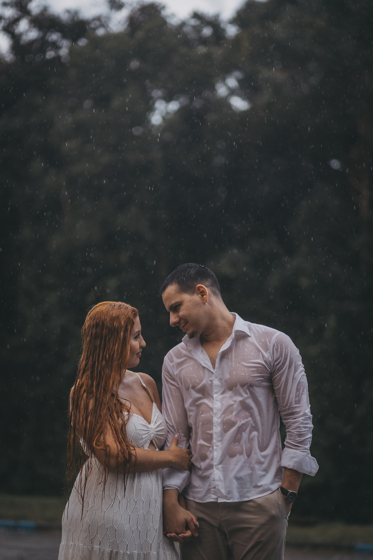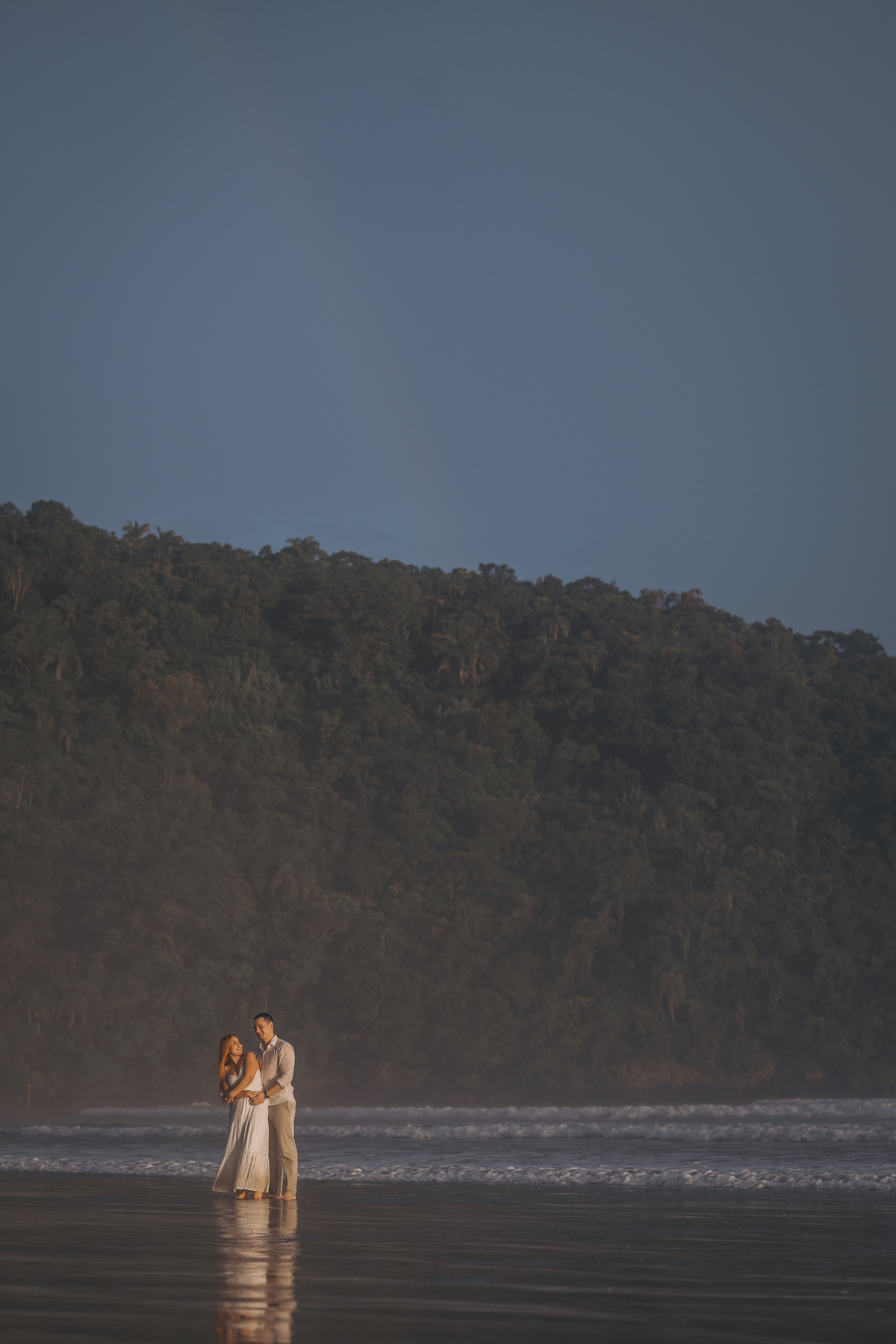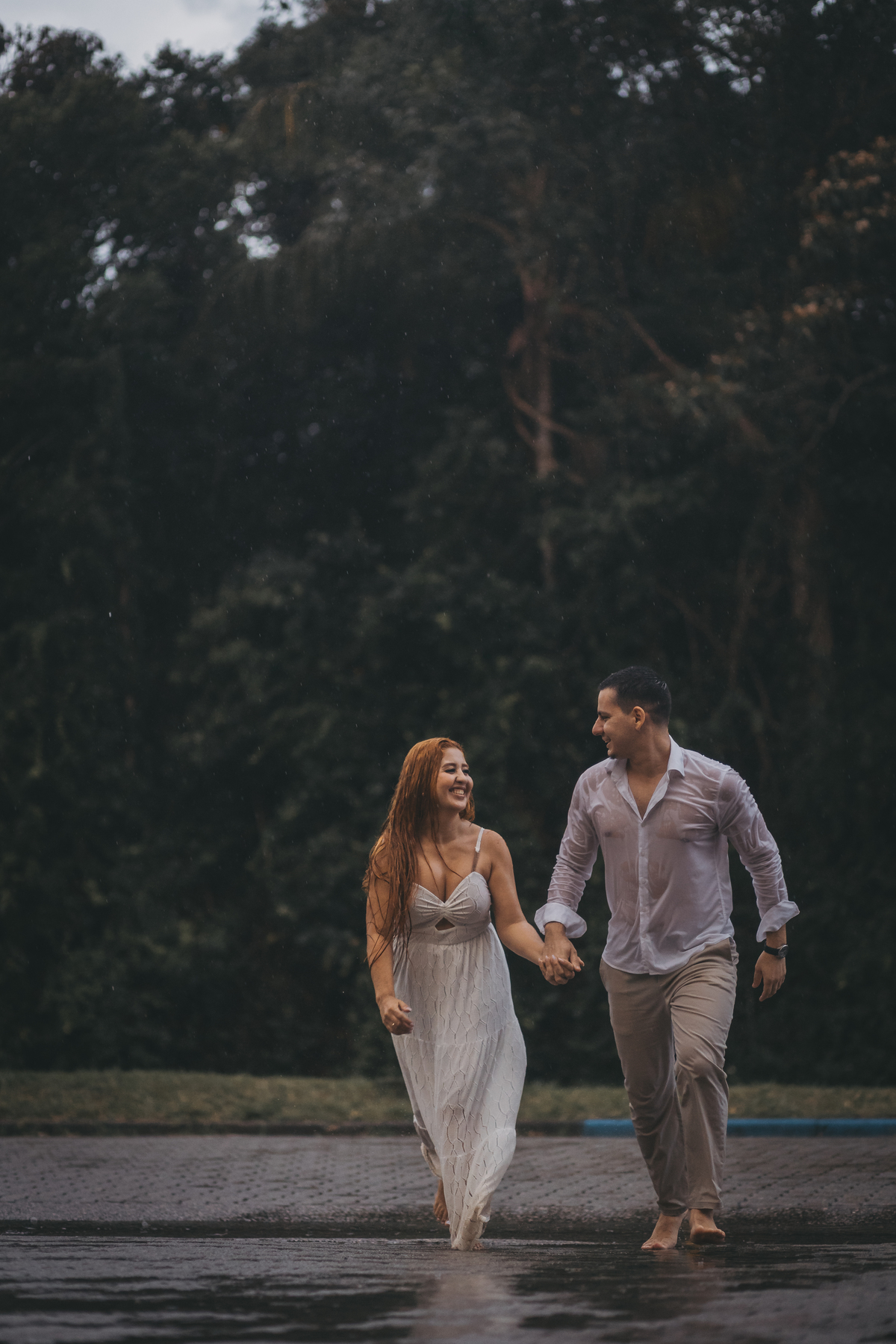 No pré wedding de Gabrielly e Bruno na Riviera de São Lourenço, começamos sob uma chuva leve que logo se intensificou, nos fazendo pausar por alguns instantes.