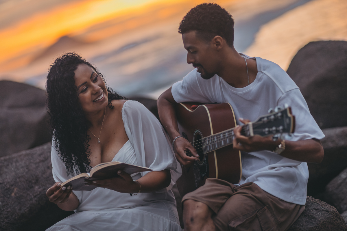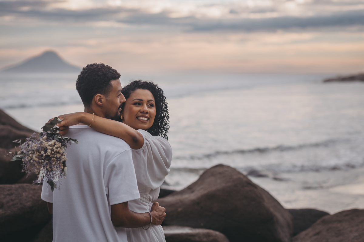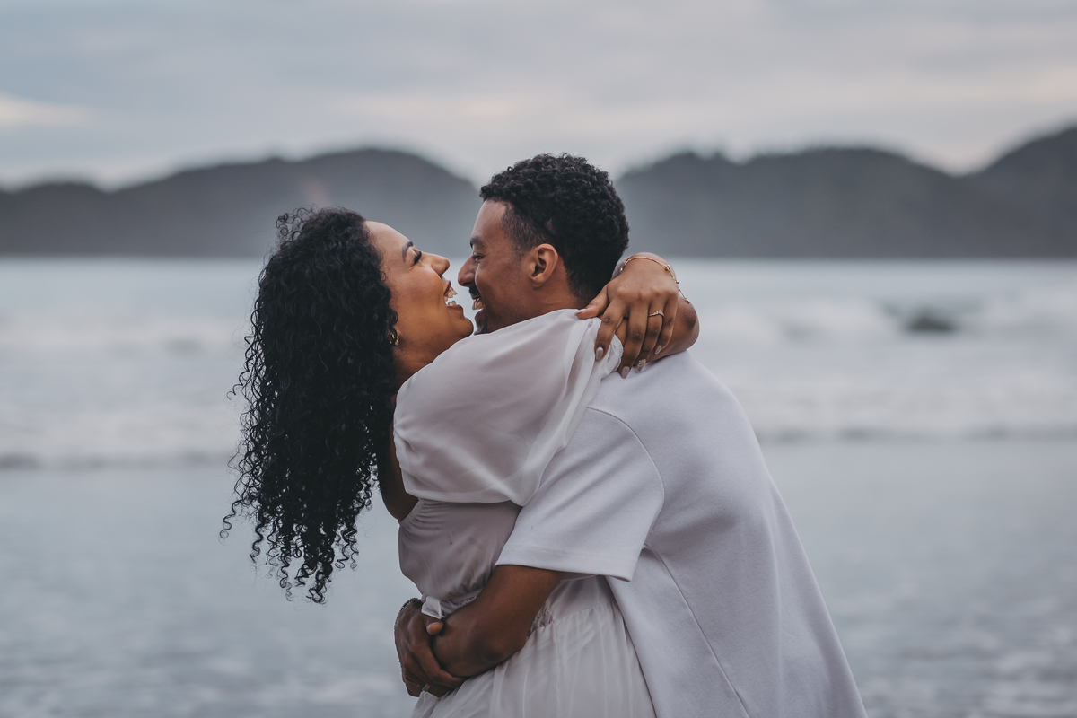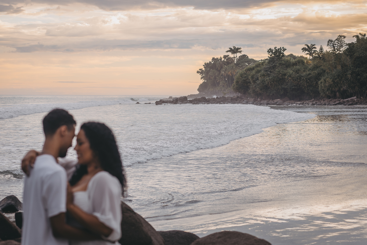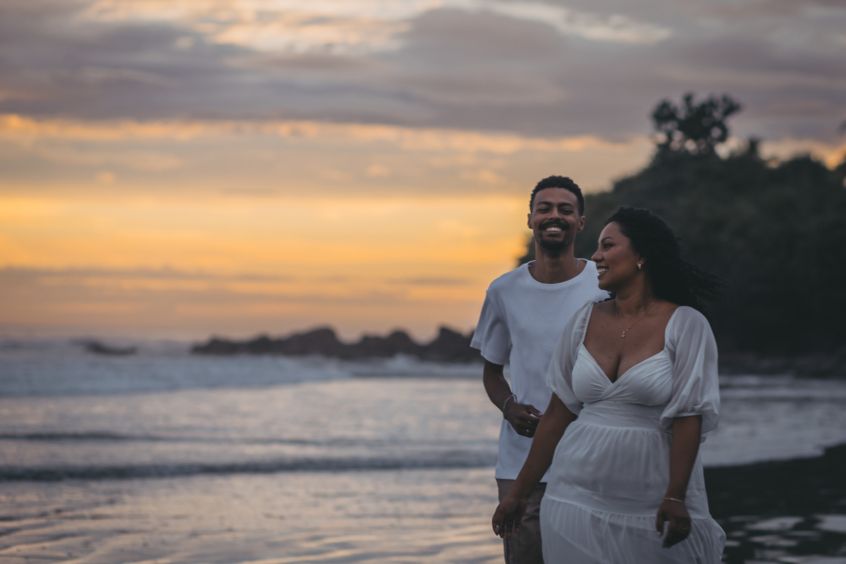 O ensaio pré wedding de Dandara e Lucas na Praia Preta, em São Sebastião, foi simplesmente encantador.