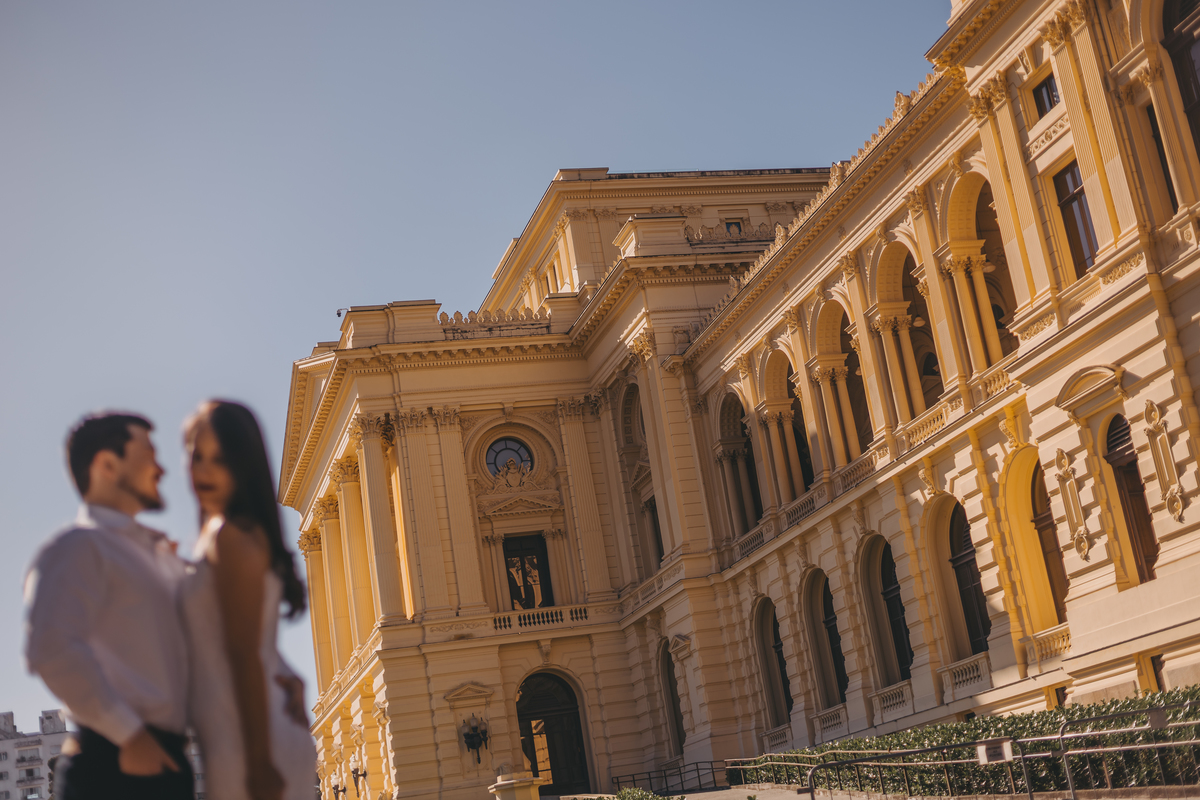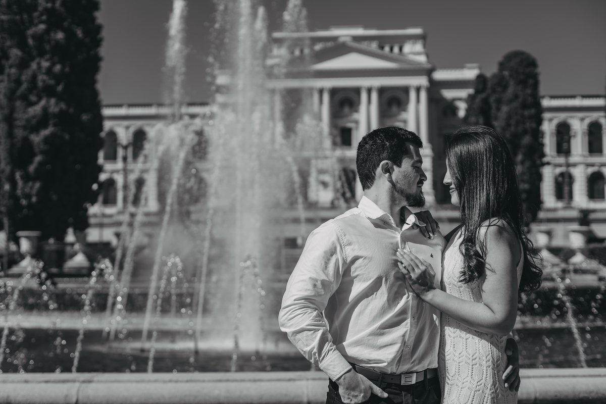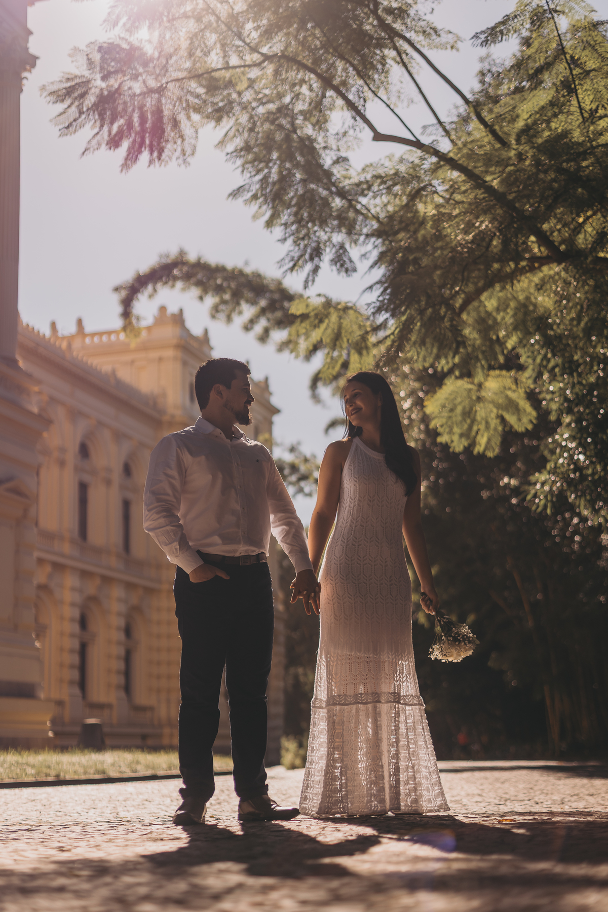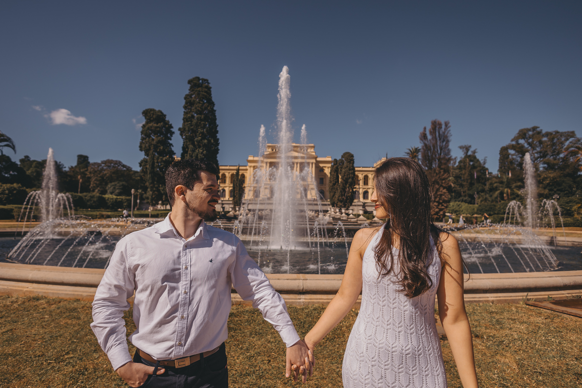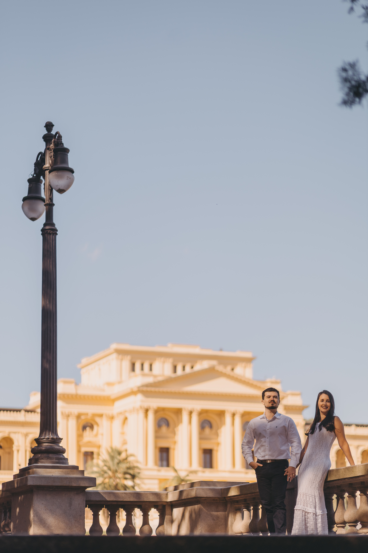 Logo cedo, por volta das 8h, Bruna e Gabriel começaram o ensaio no Museu do Ipiranga com uma luz suave que deixou tudo ainda mais especial.