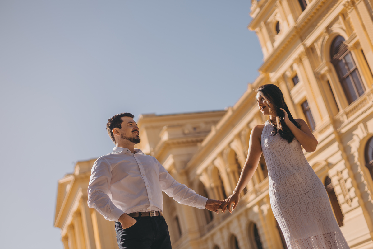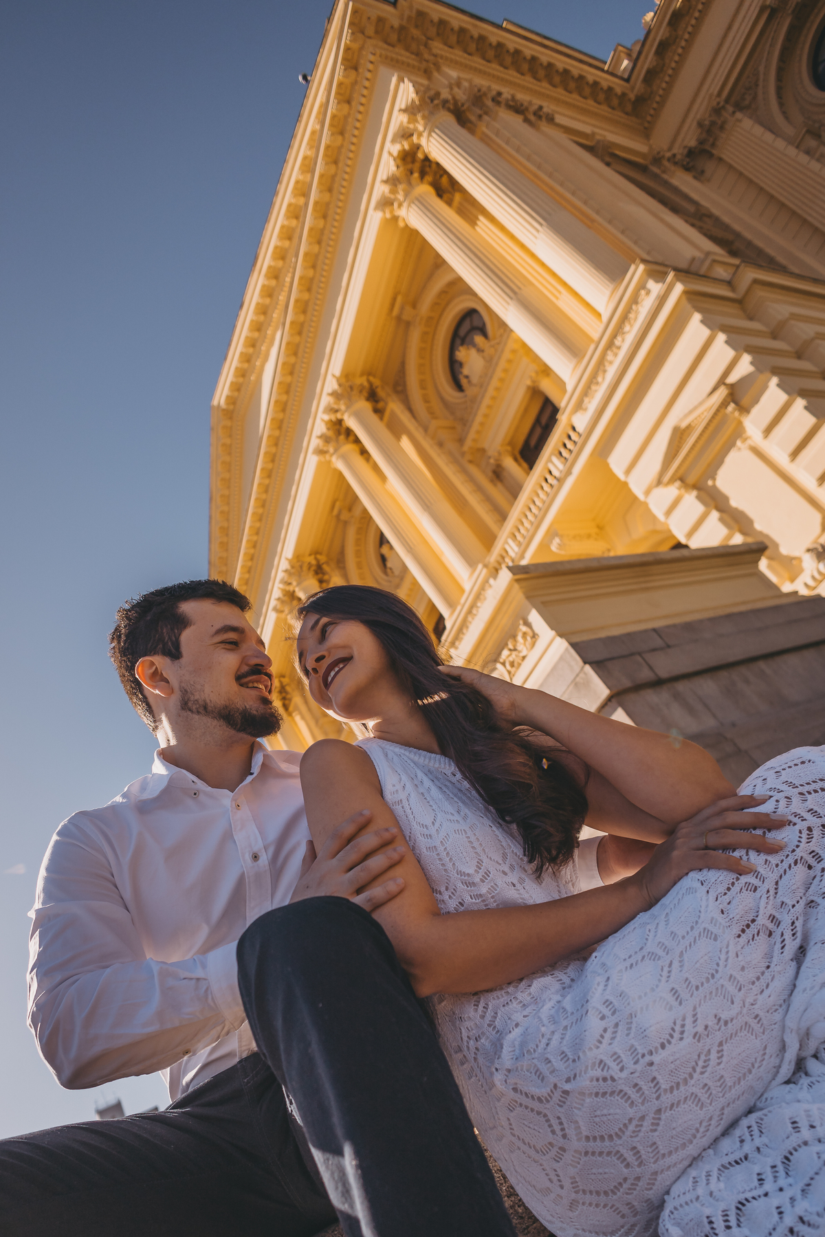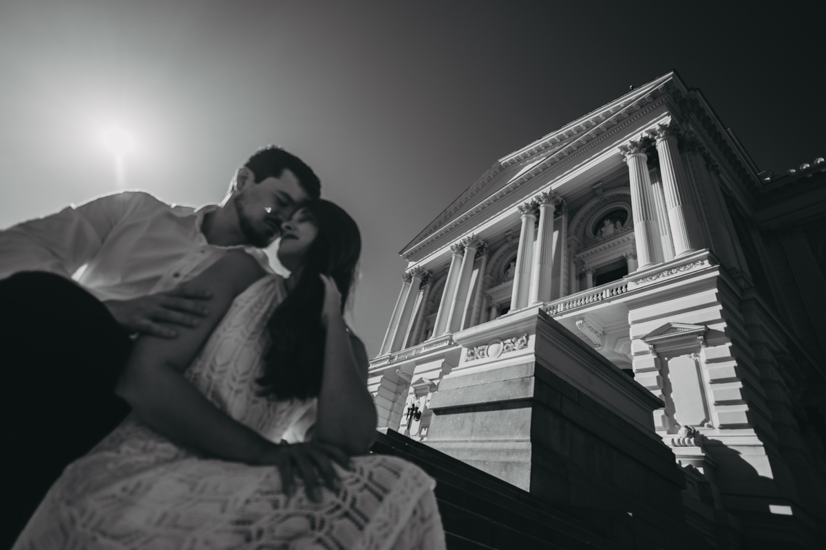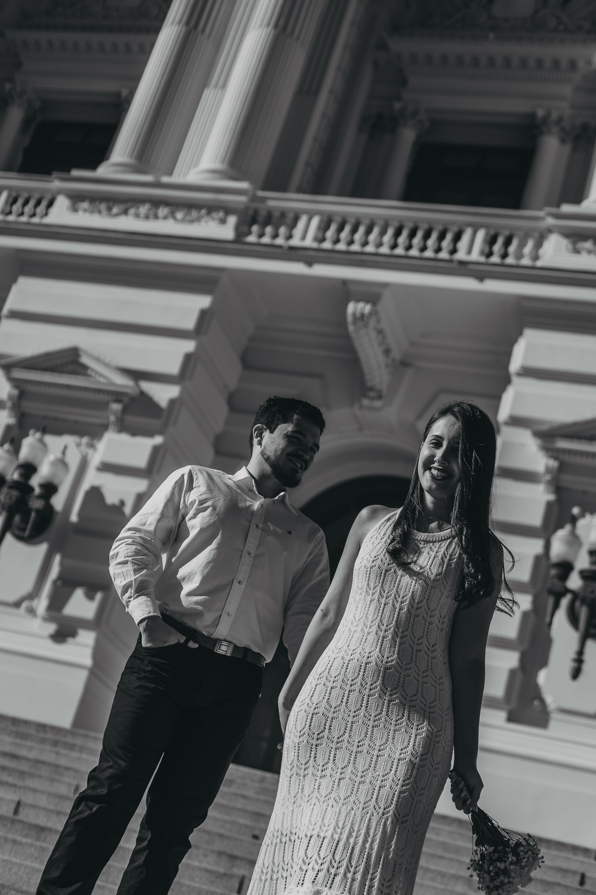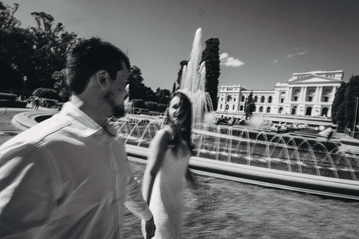 Logo cedo, por volta das 8h, Bruna e Gabriel começaram o ensaio no Museu do Ipiranga com uma luz suave que deixou tudo ainda mais especial.
