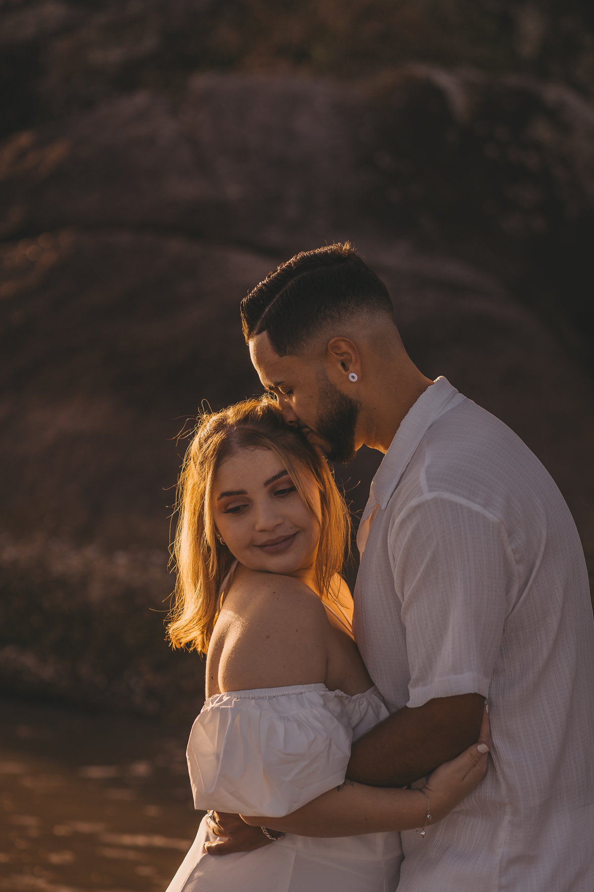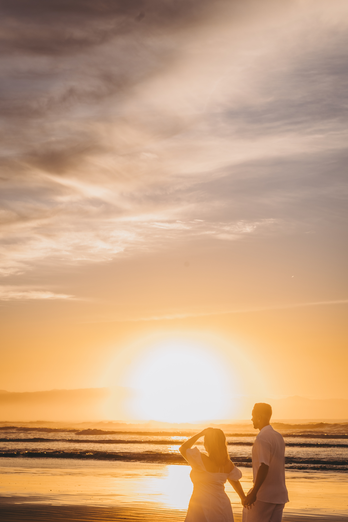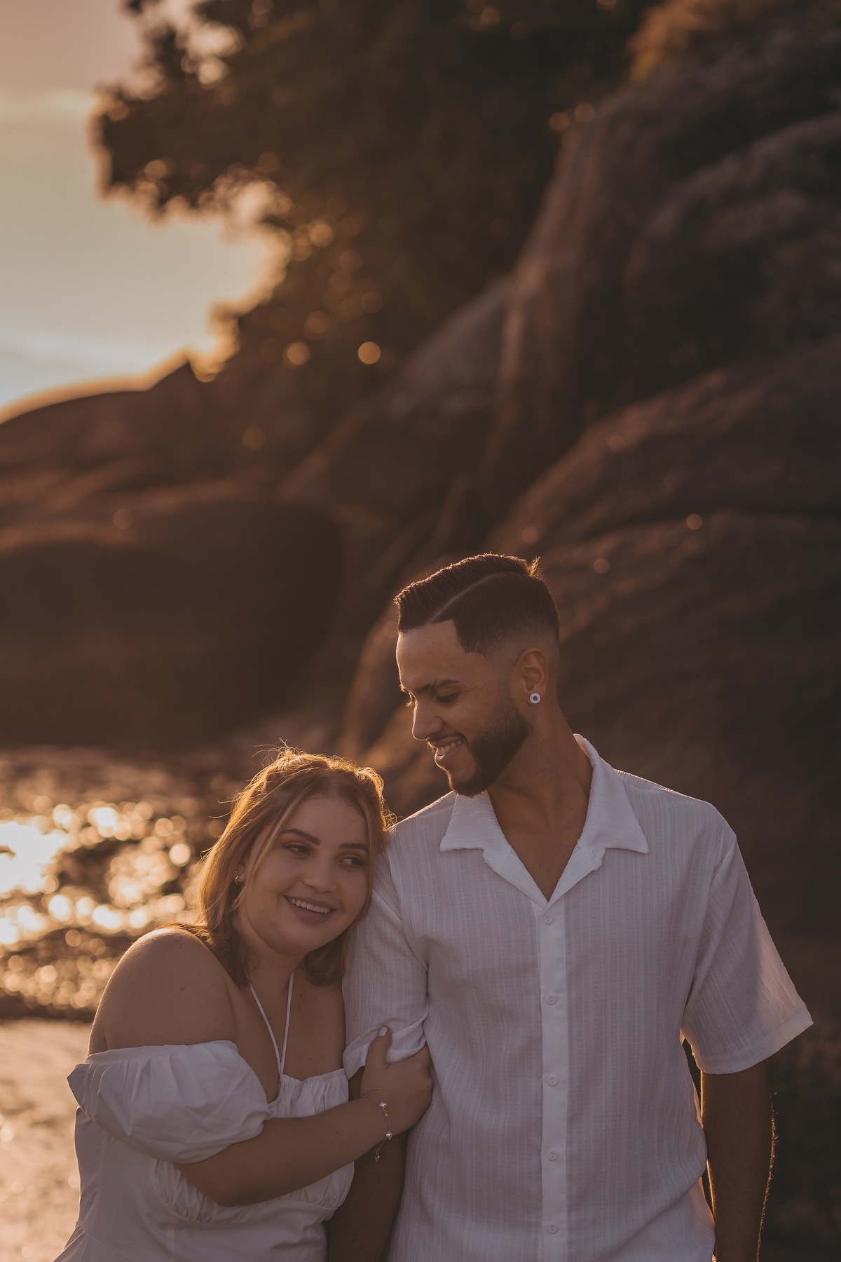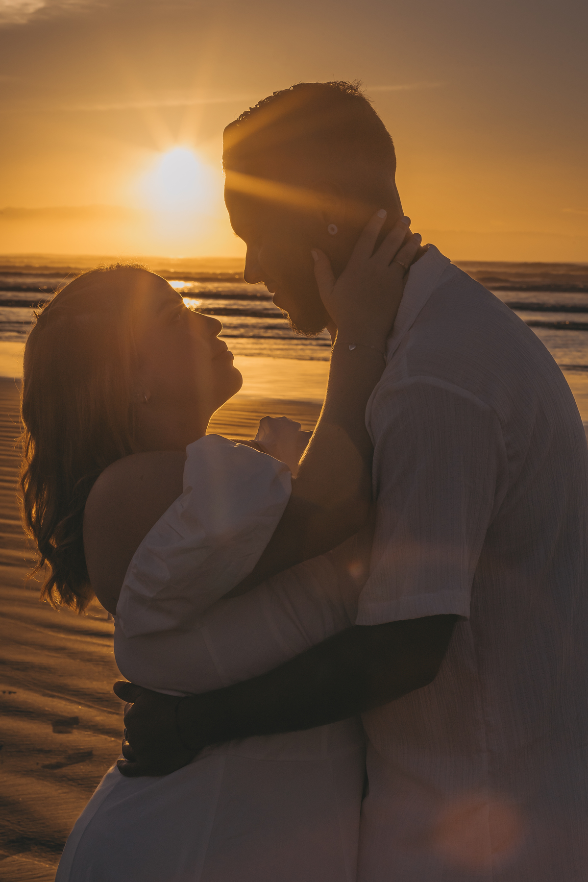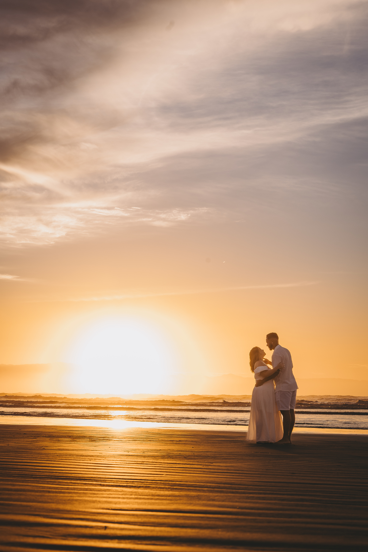 No horizonte, o sol surgia de forma espetacular, completando um momento único e inesquecível para o casal.