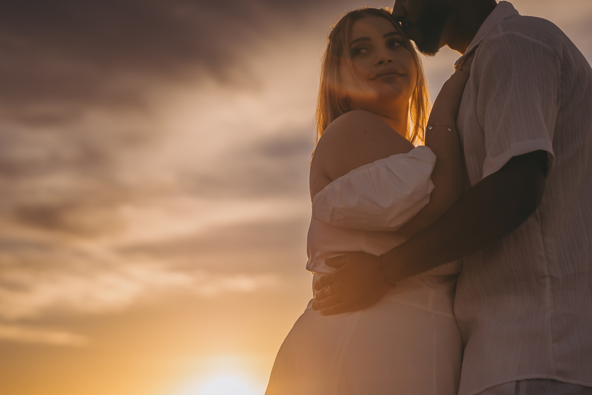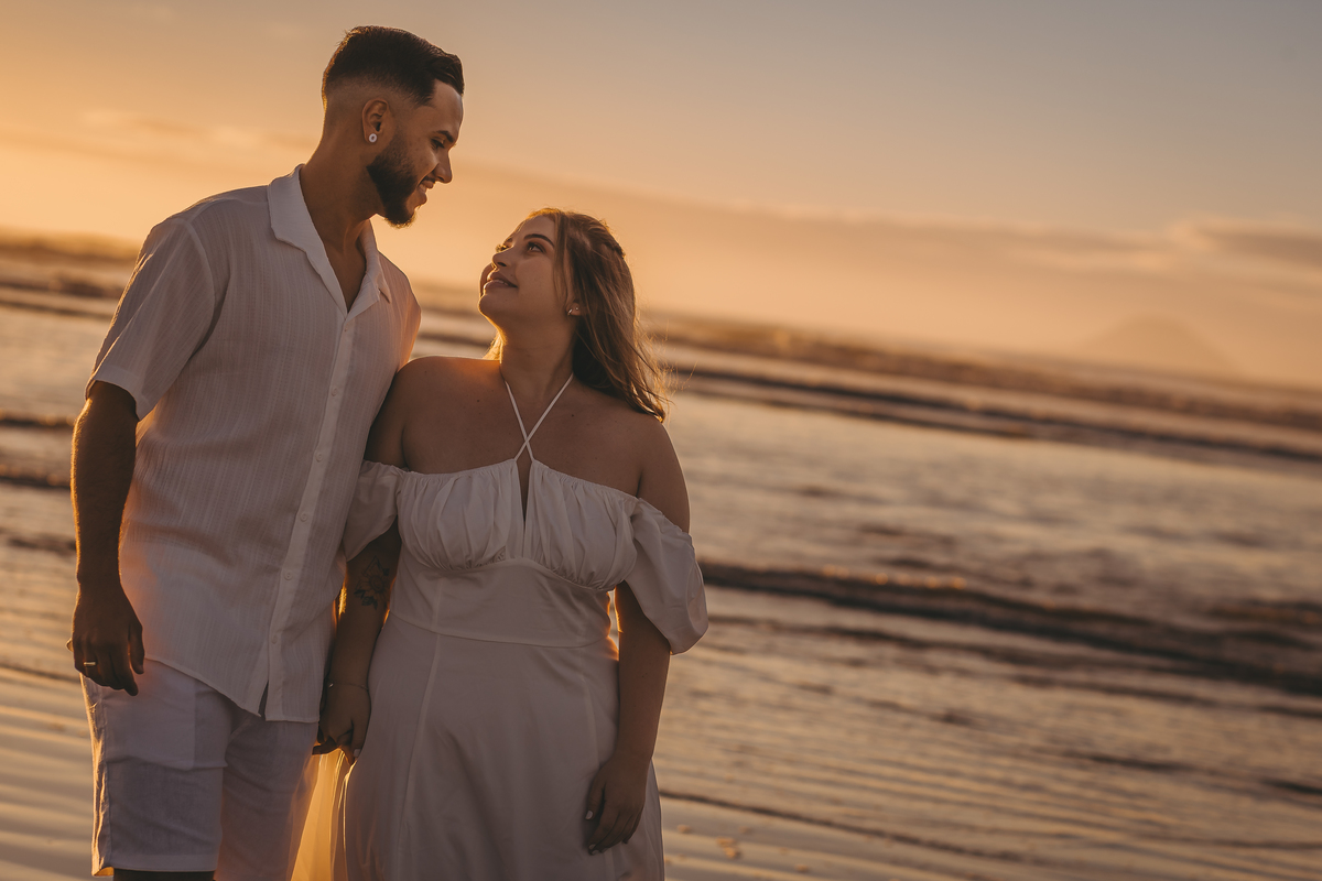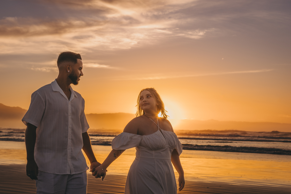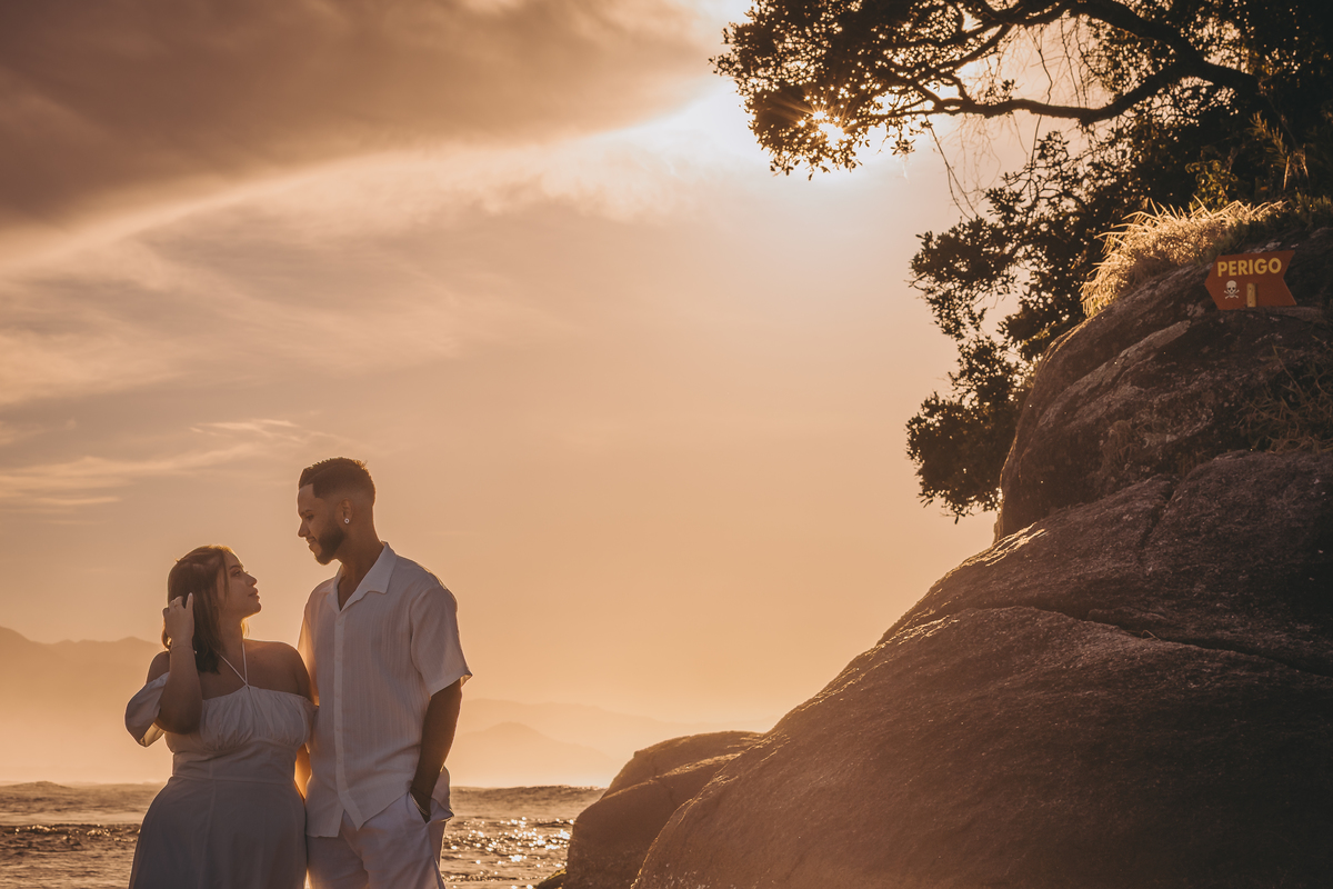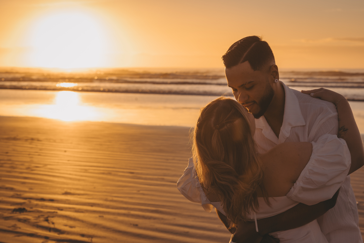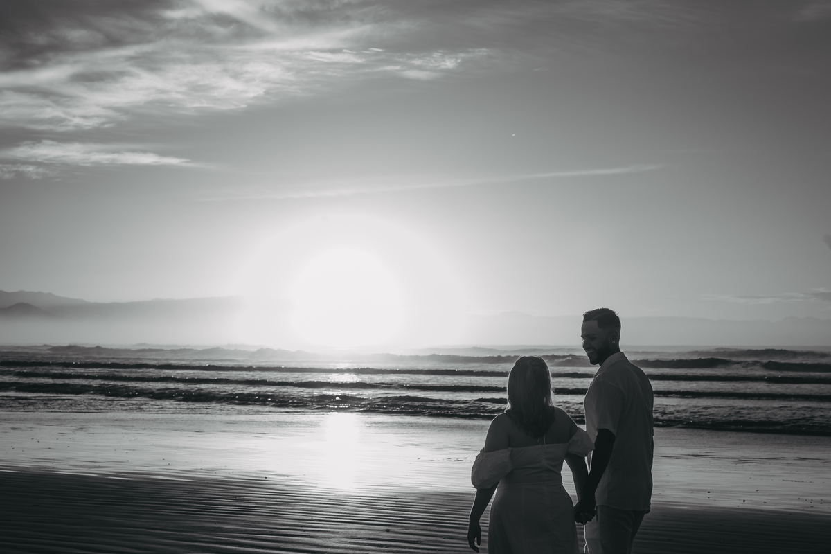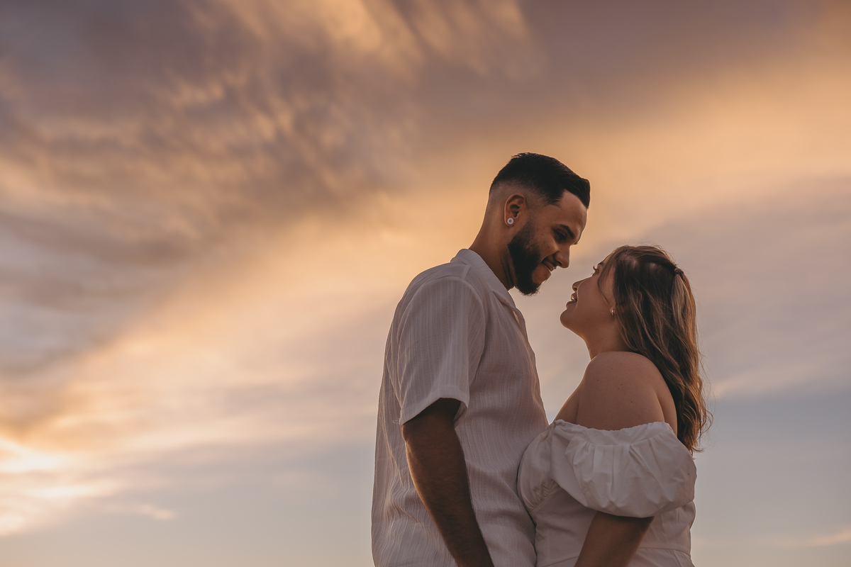Ao nascer do sol no litoral, Geovanna e Anderson viveram um ensaio leve e cheio de conexão, com um céu simplesmente incrível ao fundo.