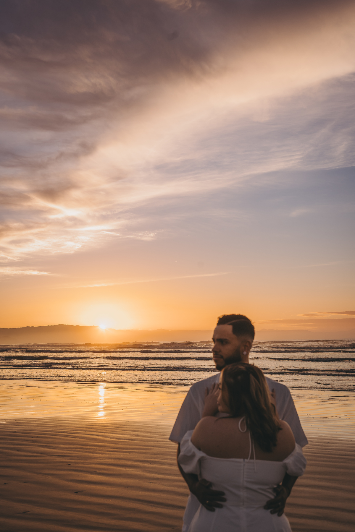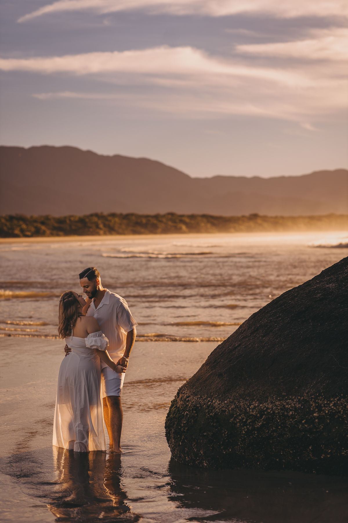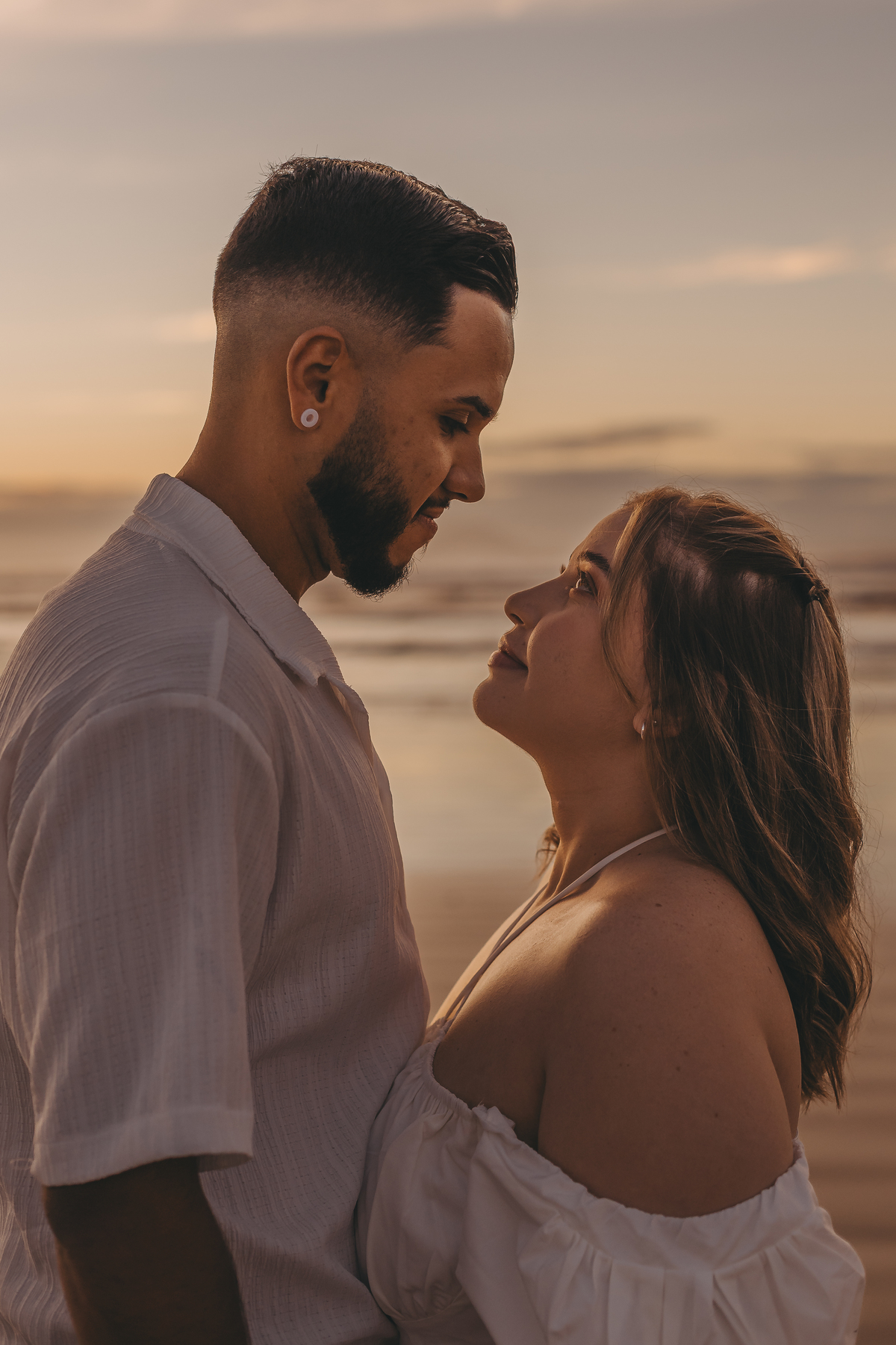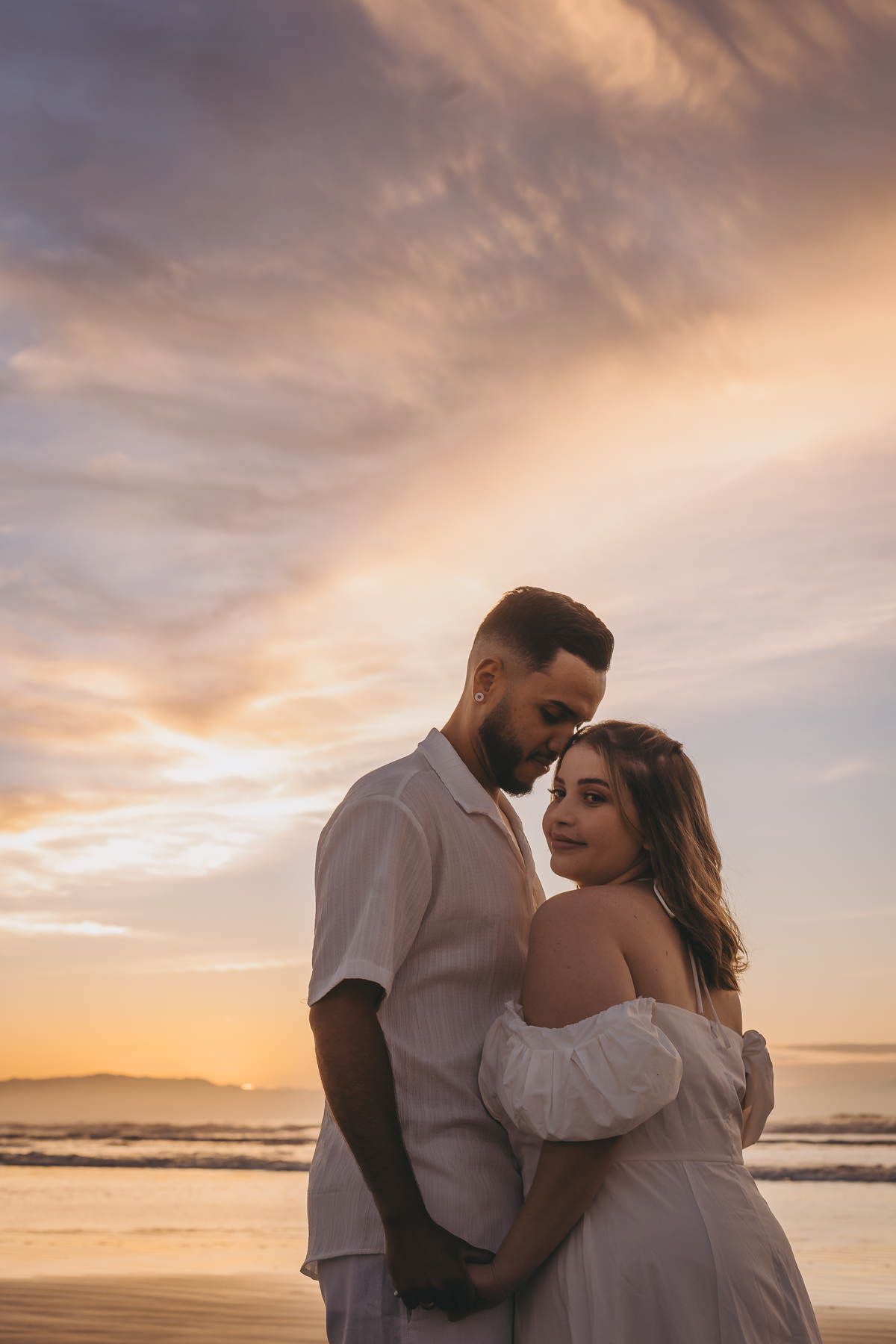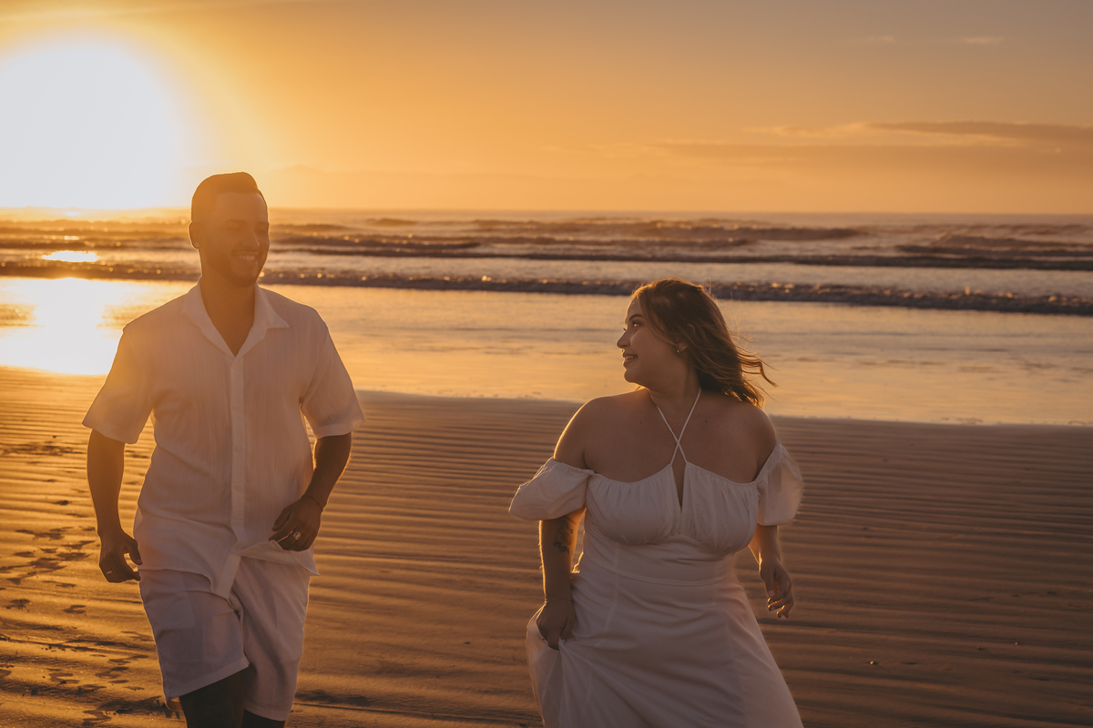Ao nascer do sol no litoral, Geovanna e Anderson viveram um ensaio leve e cheio de conexão, com um céu simplesmente incrível ao fundo.